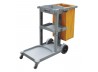 Chariot de concierge avec roues avant pivotantes et roues arrières non marquantes - support pour sac à déchets en polyester - 3 tablettes - gris
