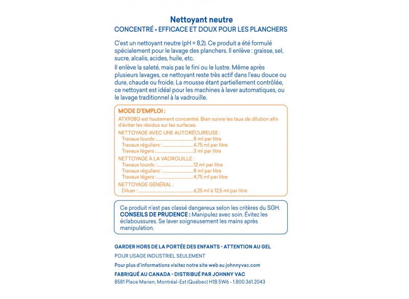 Nettoyant neutre - Efficace et doux pour les planchers - 18.9 L (5 gal) - Attax ® Pro